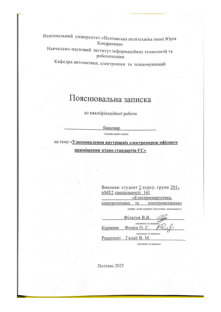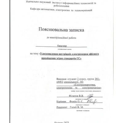 Дипломна робота 2026/04/08Удосконалення внутрішніх електромереж офісного приміщення згідно стандартів ЄС