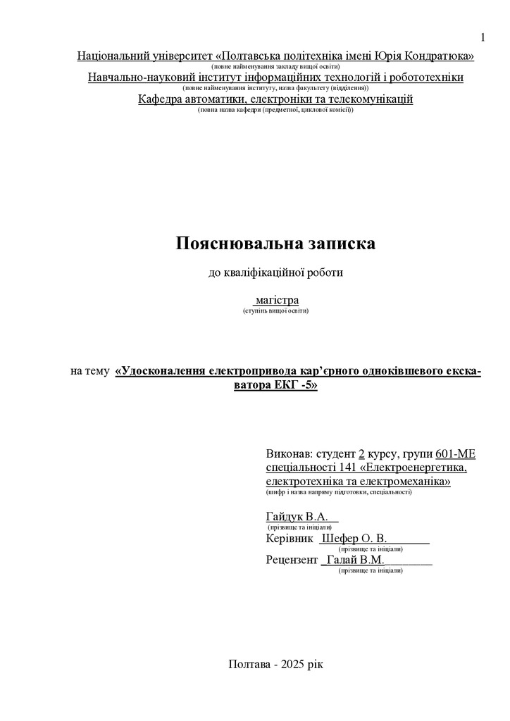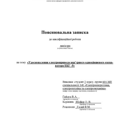 Дипломна робота 2026/03/30Удосконалення електропривода кар’єрного одноківшевого екскаватора ЕКГ -5