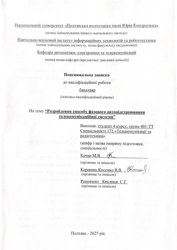 Розроблення способу фазового автопідстроювання телекомунікаційної системи