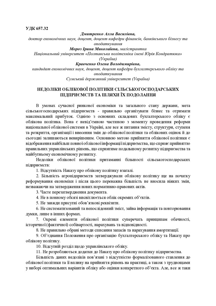 Недоліки облікової політики сільськогосподарських підприємств та шляхи їх подолання