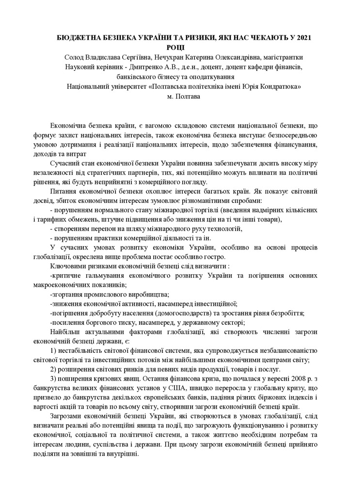 Стаття 2022/05/24Бюджетна безпека України та ризики, які нас чекають у 2021 році