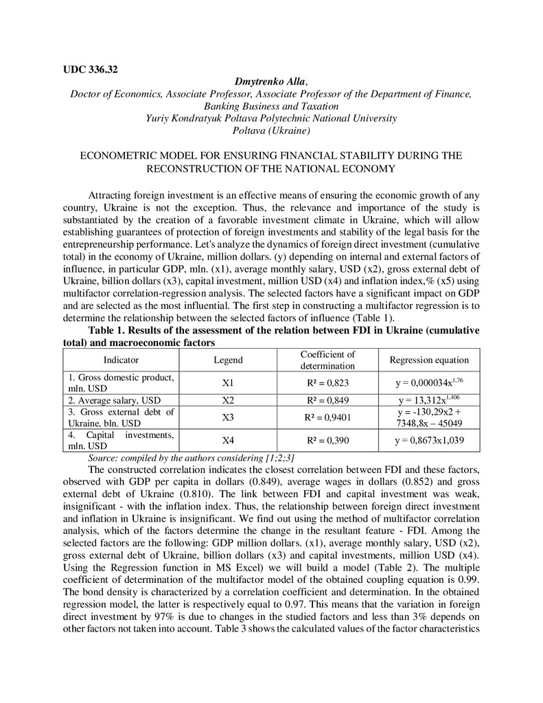 Стаття 2023/06/12Econometric model for ensuring financial stability during the reconstruction of the national economy