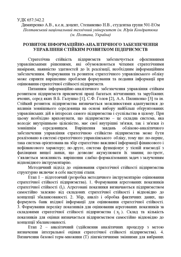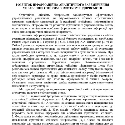 Розвиток інформаційно-аналітичного забезпечення управління стійким розвитком підприємств