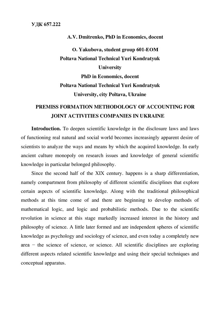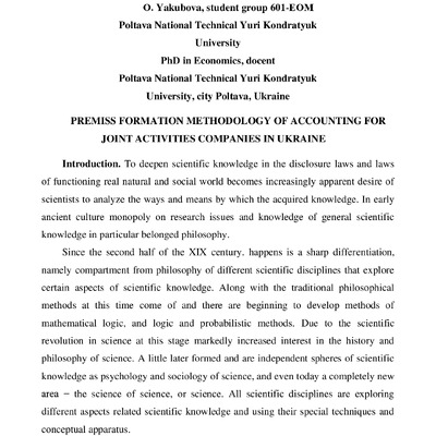 Стаття 2021/05/07Premiss formation methodology of accounting for joint activities companies in Ukraine