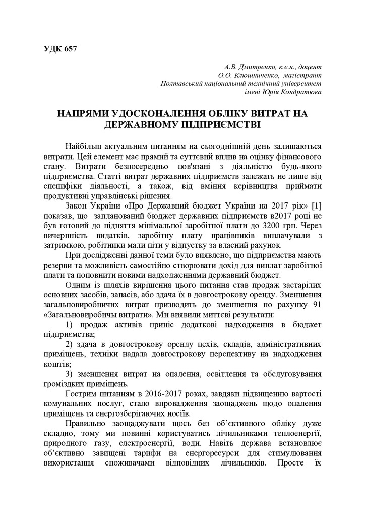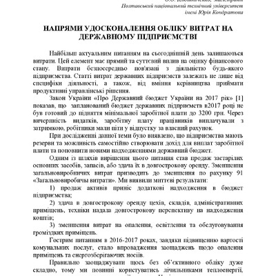 Стаття 2021/05/07Напрями удосконалення обліку витрат на державному підприємстві
