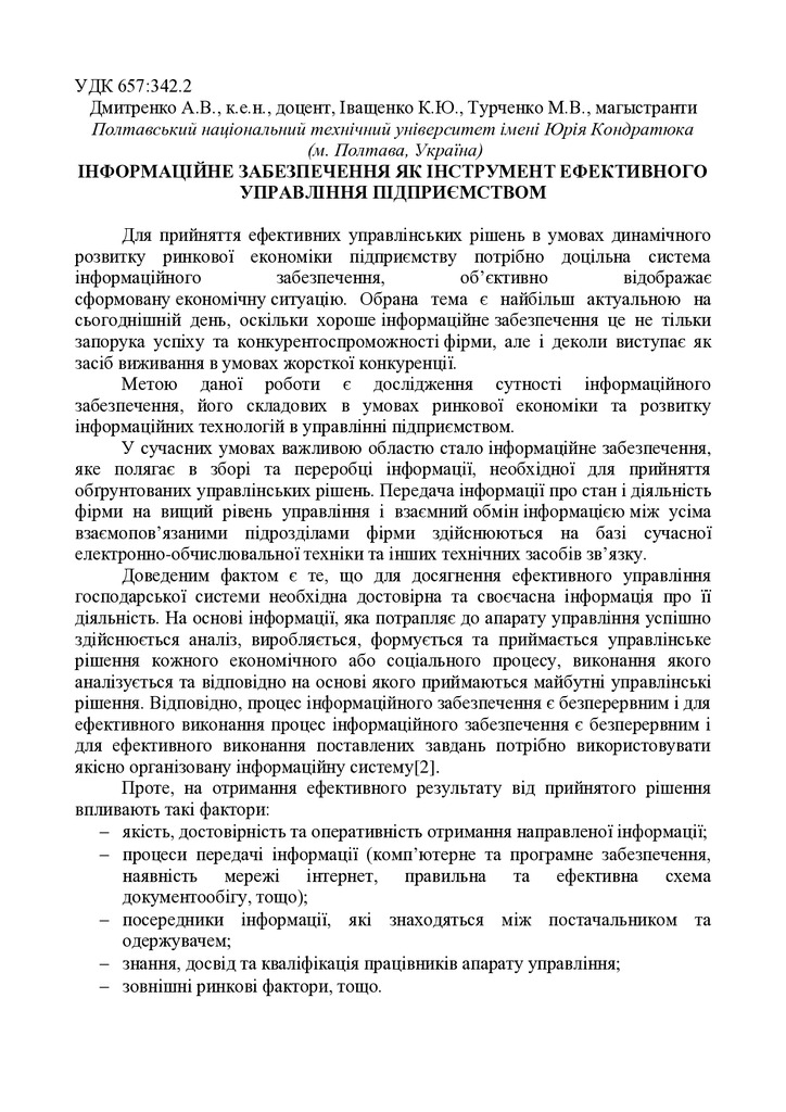 Стаття 2020/06/03Інформаційне забезпечення як інструмент ефективного управління підприємством