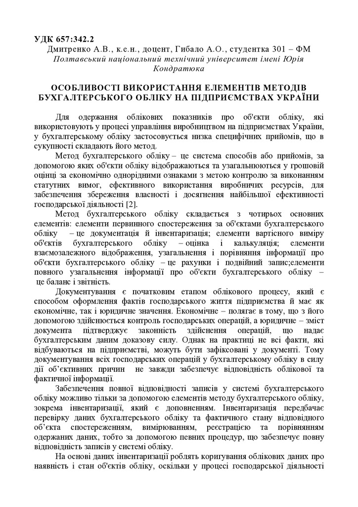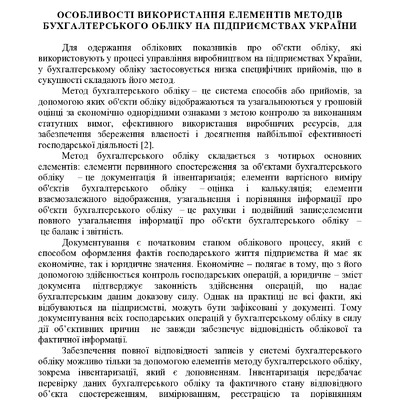 Стаття 2021/05/07Особливості використання елементів методів бухгалтерського обліку на підприємствах України
