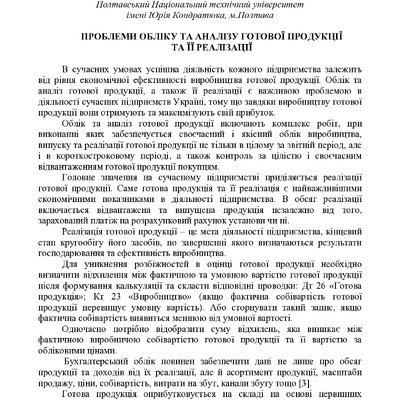 Проблеми обліку та аналізу готової продукції та її реалізації