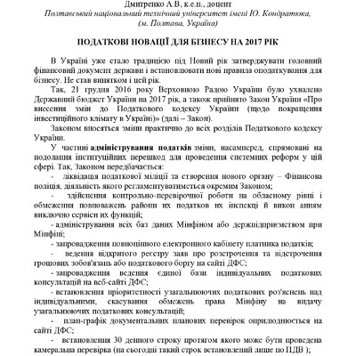 Стаття 2021/05/07Податкові новації для бізнесу на 2017 рік