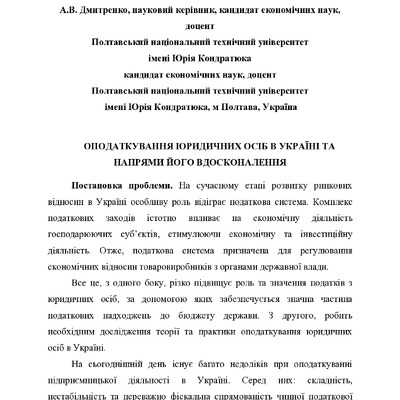 Стаття 2021/05/07Оподаткування юридичних осіб в Україні та напрями його вдосконалення