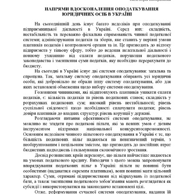 Напрями вдосконалення оподаткування юридичних осіб в Україні
