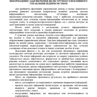 Інформаційне забезпечення як інструмент ефективного управління підприємством
